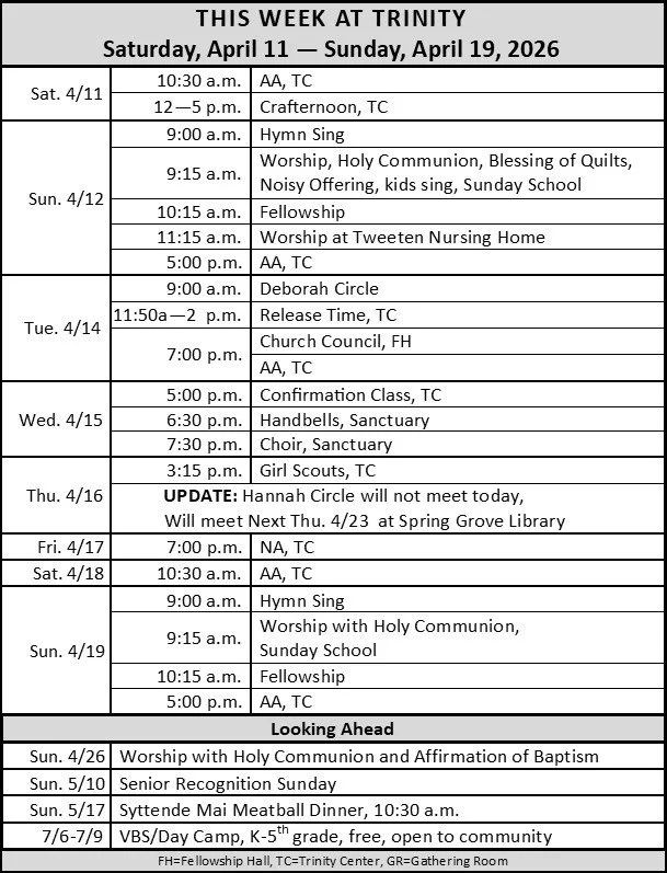 Phone 507.498.5291 | trinityspringgrove@gmail.com